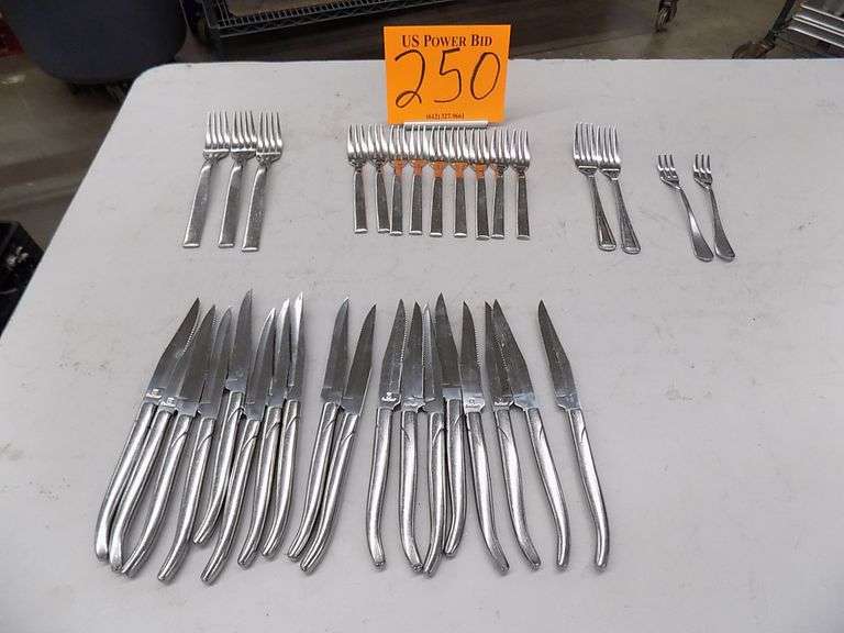 LOT 250 - Sixteen Assorted Forks & Eighteen Fortessa Steak Knives
