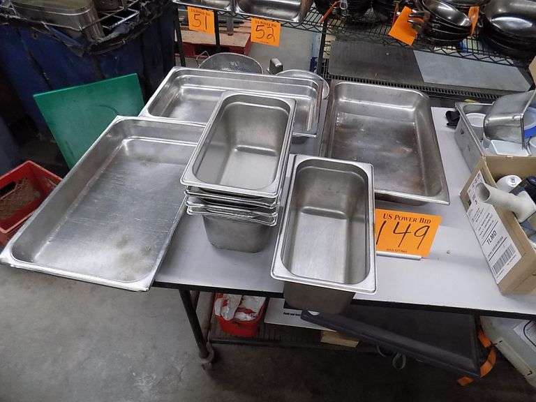 LOT 149 - Three Full Size SS Pans *Five SS 1/3rd Size Pans