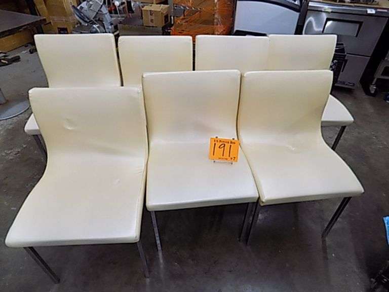 LOT 191 - 7 Modern Dining Chairs, Cream Upholstered Seat/ Back, Metal Frame